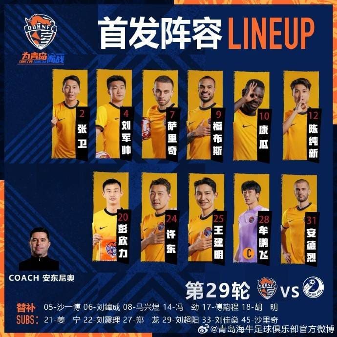 半岛体育-青岛海牛首发: